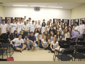 Alunos do Colégio Santo Inácio que viajarão junto com os do Liessin para a Marcha da Vida 2016 também participaram desta palestra.