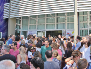 E, com muita alegria, no dia 28 de agosto, o Liessin Barra recebeu membros do Conselho Deliberativo, membros do Diretório de Pais, famílias, alunos, professores, instituições judaicas, coordenadores e diversos convidados para a inauguração de seu novo prédio.
