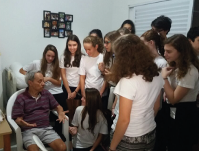 O grupo conheceu as instalações e se apresentou com muita alegria, participando, inclusive, da comemoração de aniversário de uma das residentes.