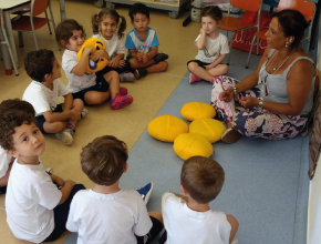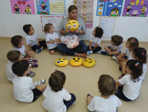 Durante o período de adaptação para o ano letivo de 2017, os pequenos alunos do Berçário II e Maternal I participaram de atividades especiais envolvendo música, teatro, atividades psicomotoras, contação de histórias e muitas brincadeiras que estimularam a integração entre adultos e crianças, tornando-os seguros no ambiente escolar. Através de histórias selecionadas, o grupo do Maternal II conheceu e identificou diversas emoções, como alegria, tristeza, raiva etc. O Pré I, a partir de dinâmicas de grupo e das aulas de yoga, debateu sobre a importância de seguir regras e limites, e a importância do autocontrole diante de conflitos e frustações. As “almofadas das emoções” e as histórias dramatizadas sobre situações do cotidiano escolar propiciaram ao Pré II expressar sentimentos e enfatizar formas positivas de se relacionar.