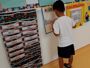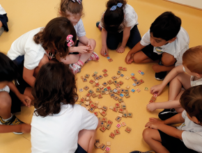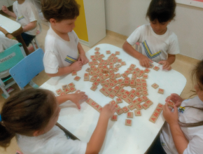 As “rodas de conversa”, a “chamadinha”, a “janelinha do tempo” e outras situações são oportunidades para os alunos se expressarem oralmente, começarem a perceber que existe uma língua escrita e a se interessarem pelo seu significado, desde o Berçário II. Por isso, nossos ambientes são letrados e várias atividades como “Oficina de leitura”, “Oficina Culinária”, “Detetives do Conhecimento” e “Descobrindo o universo infinito dos números” estimulam o registro de ingredientes e quantidades por meio de textos, histórias, livros, símbolos e ilustrações.