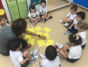 Brincar com os cartões do nome favorece não só a visualização da grafia do próprio nome, como também a percepção do nome dos amigos, dando início às reflexões sobre o sistema de escrita e da construção fonológica.